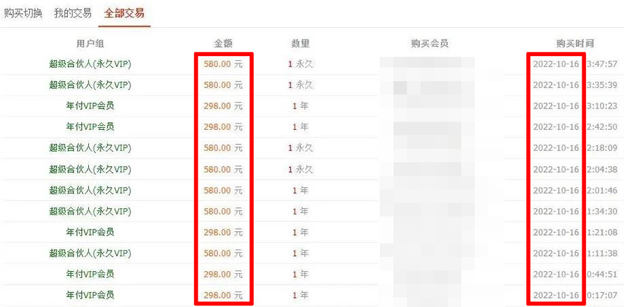 VIP会员设置298、580不等,每月都有稳定的收益!